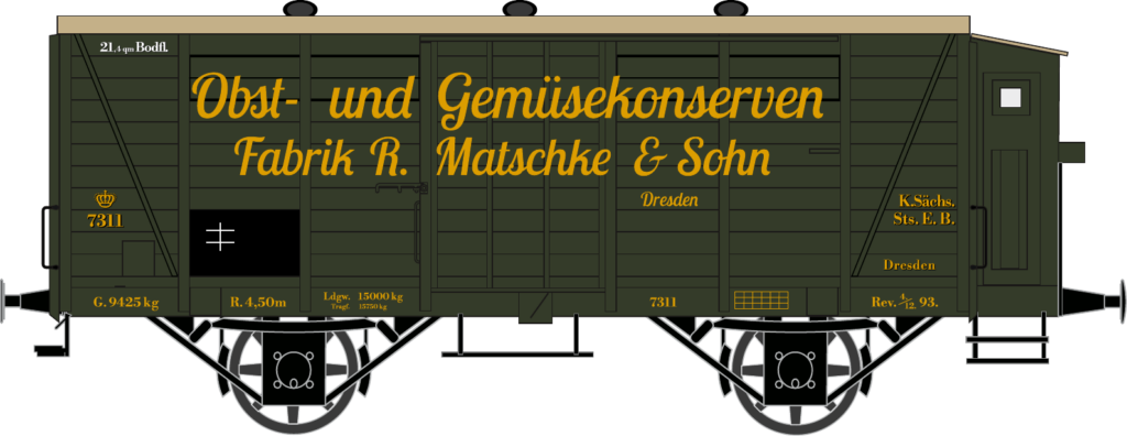 Die Fabrik R. Matschke bezog Obst und Gemüse aus weiten Teilen des Königreichs. Damit der Name nicht Programm wurde waren schnelle und schonende Transporte der Rohware unerlässlich. Der Wagen basiert konstruktiv auf dem G3, erhielt aber ein tiefes Bremserhaus, damit beim häufigen Rangieren schnell ein Bremser auf- und absteigen konnte. Die Spindelbremsung war auch beim Verschub mittels Hand, Drahtseil oder Pferd allemal schonender als der übliche Weg per Holzknüppel an den Rädern. Der breite Auftritt unter der Tür erleichterte das Beladen an ländlichen Stationen, wo oft nur ein ebenerdiges Ladegleis ohne Rampe zur Verfügung stand. Dank mehrerer Dachlüfter konnte das Wageninnere besonders gut durchlüftet werden, was den schnellen Verderb des Obstes durch seine eigenen Reifegase verminderte. Aber am Ende ging nichts über Geschwindigkeit – der Wagen erhielt daher die (derzeit vermutete) dunkelgrüne Farbgebung der Eilzugwagen um auch in schnellen Personenzügen mitlaufen zu können.