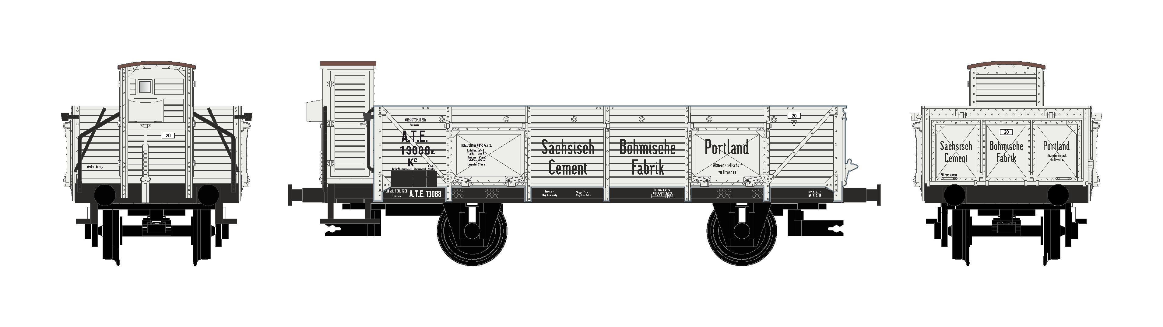 Unsere Serie von Wagen Wagen der Sächsisch-Böhmischen Portland-Cement-Fabrik AG zu Dresden ist ein Dauerbrenner. Jetzt legen wir mit zwei neuen Modellen nach – mit Formen, welche perfekt in die dargestellte Region und Zeit passen! Zwei Österreichische 20t-Güterwagen der Gattung Ke von Quack & Salber, eingestellt bei der ATE. Güterwagen kann man bekanntlich nie genug haben!